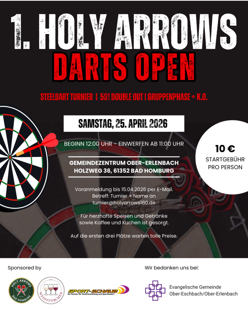 Wir sind die eine bunte Truppe Hobby-Darter und eine offizielle Gruppe der Ev. Gemeinde Ober-Eschbach/Ober-Erlenbach. Was uns verbindet… Die Liebe zum Dartsport!
